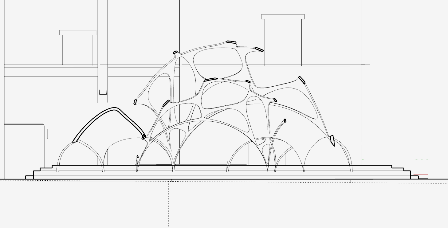 With a web-like structure for the installation to contrast the sharp edges of the outdoor exhibition. Again did not have enough connection to my design theory and overall site.