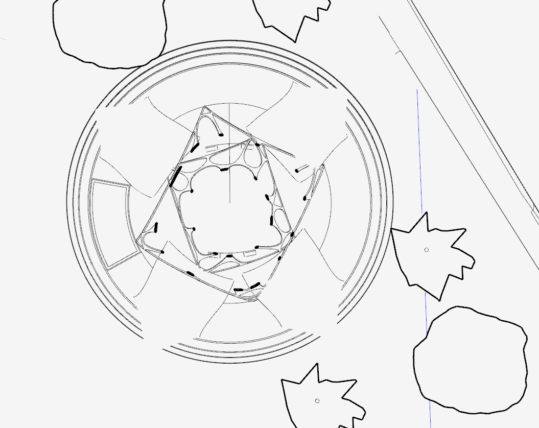 My original theatre design was an abstract form that formed leading lines pointing towards the exhibition area however this form had no connection with the rest of my site. From which the telescopic structure now co-exists with the installation at the front of the site.